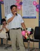 早上九點,藏龍二橋項目部大部分員工已經上工地了。院子里干凈整潔,很安靜,兩名員工正在更換被風吹得有些破舊的旗幟。 一路走過庭院上樓,兩個人正從第二個房間走出,匆匆離開。這時,屋里探出一個人,看到我們一愣,便笑了起來。微胖壯實的身材,大概因為天氣轉涼,白襯衫外面套著件黑馬甲。圓圓的臉,眼角、額上已有風吹日曬、歲月流逝留下的痕跡。