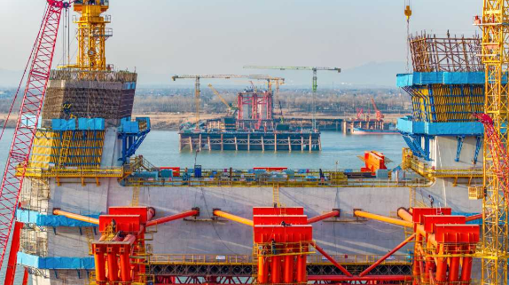 2月9日,安徽池州長江公鐵大橋建設正全力推進。